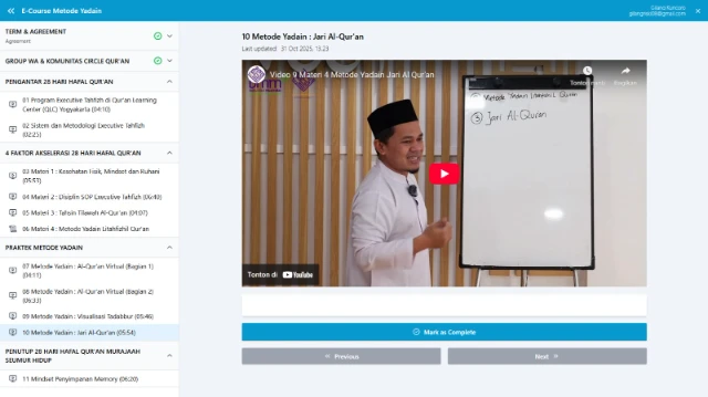Video E-Course Pre-Class Metode Yadain Litahfizhil Qur'an & Bedah Strategi Akselerasi 28 Hari Hafal Qur'an : senilai Rp. 297.000